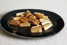 ◆材料(2人分) レンコン……大1節(約300g) サラダ油……大さじ1 酒……大さじ1 しょうゆ……大さじ1 粉サンショウ……小さじ1