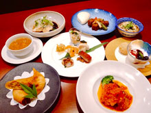 メイン料理+小前菜、スープ、ライス、香の物、デザート